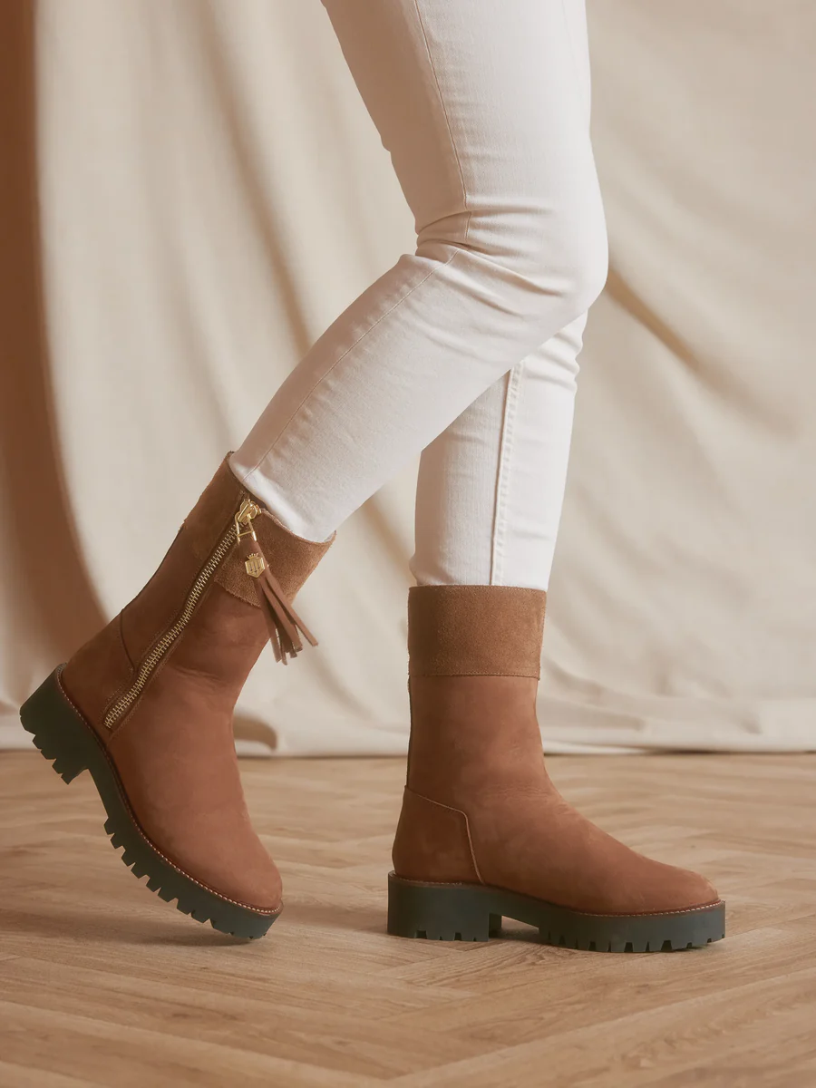 Our quarter-length boot is perfect when an ankle boot is too short and a tall boot too long. The Paris is crafted from nubuck and suede with cosy shearling lining, making it a great addition to your off-duty cold-weather wardrobe for that winning blend of comfort, practicality and country-inspired style.